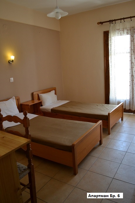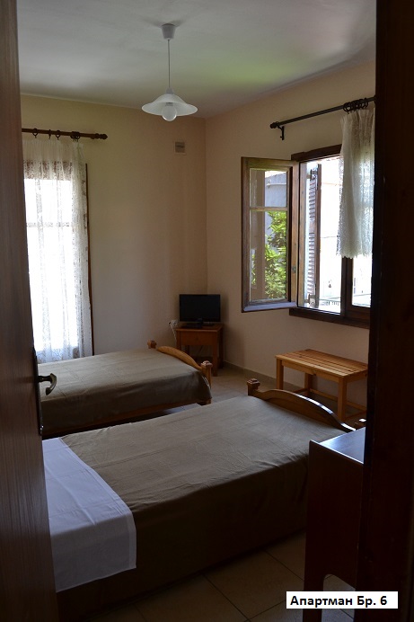 - Апартман 1/2– два единечни кревети, одвоена опремена кујна, бања, ТВ, тераса.