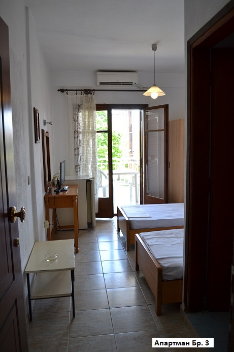 - Студио 1/2– два единечни кревети, мал фрижидер,мала кујна, бања, ТВ, тераса.